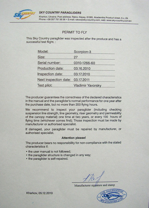 Gyártói bizonylat légialkalmassághoz - SkyCountry ( jpeg - 112583 bytes - 2 )